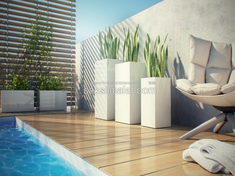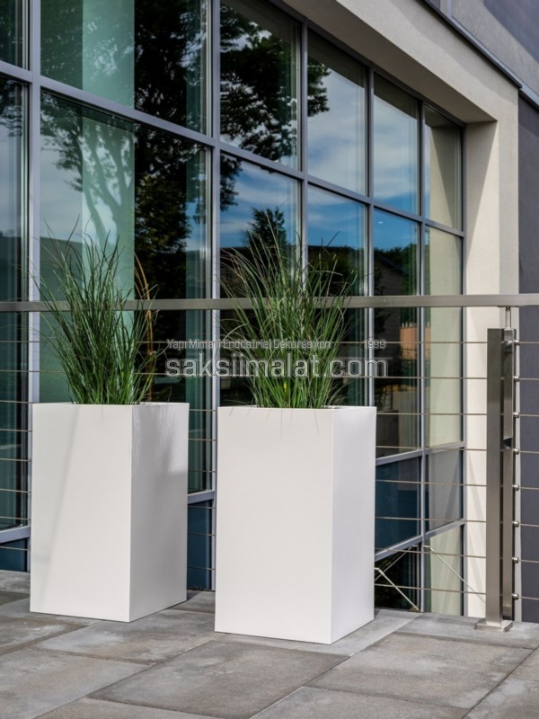 Modern büyük ebatlı diktörtgen saksılarımız ger türlü iç ve dış mekan kullanımı için mükemmeldir. Malzeme olarak savunma ve endüstri’nin vazgeçilmezi fiber’den imal edilmesidir. Diğer üretim yöntemleri çatlamaya, solmaya ve kırılmaya karşı eğilimliyken kompozit fiber saksılar uv ışınlarına, yağmura, kar ve dona son derece dayanımlıdır. Kimyasal direnci yüksek olan büyük saksılarımız kaldırımlar, teraslar balkonlar ve en önemlisi deniz kenarında tuz asitlerine karşı dayanımıyla ön plandaki özelliklerinden bir kaçıdır.