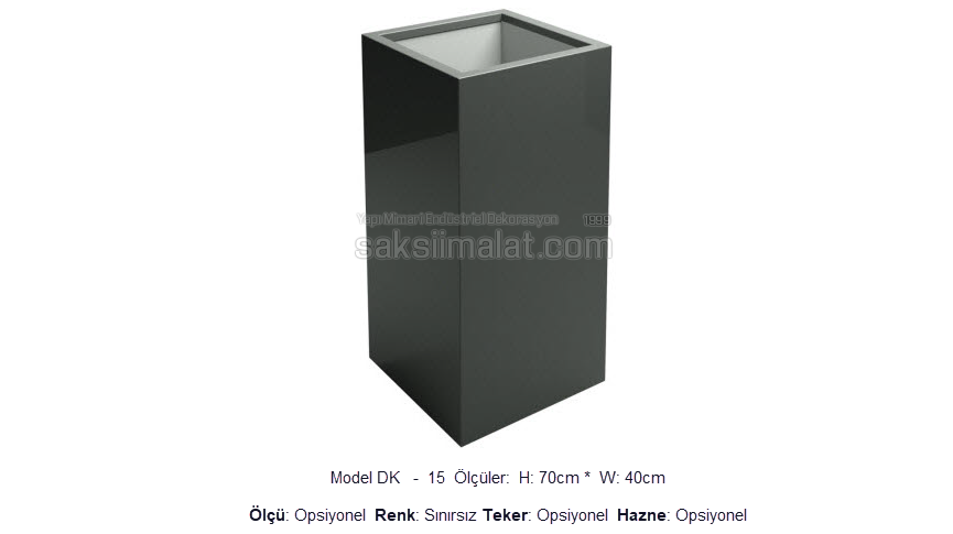 Saksı model görselinde ölçüler ve genel özellikler hakkında bilgi edinebilirsiniz. Ölçü: Sabit – Seçenekli saksılarımız toplu siparişlerinizde ölçü değiştirilebilmektedir. Opsiyonel: Seçenekli saksılarda projenize uygun ölçüleri gönderebilirsiniz.